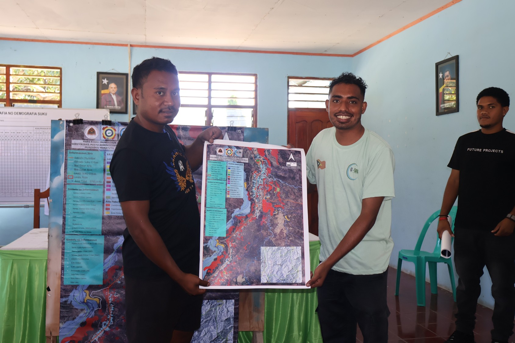 On Saturday, March 21, 2026, G-SIG, in collaboration with local authorities from Suco Cribas, successfully handed over five digital maps covering all five aldeias: Aldeia Uebani, Aldeia Ranak, Aldeia Ata-Hok, Aldeia Caunua, and Aldeia Tuquetin. These maps focus on identifying flood and landslide risks across the suco.