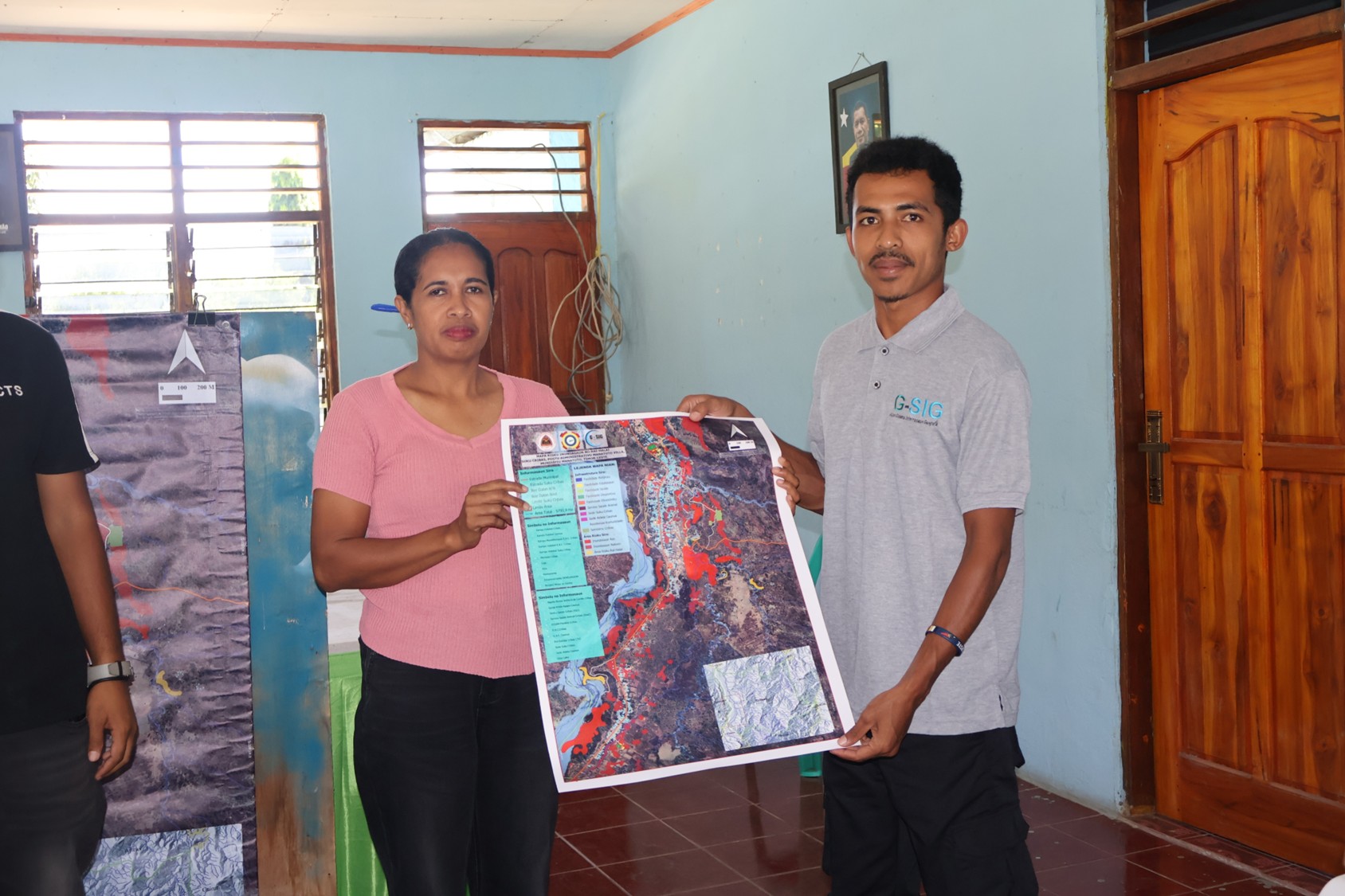 During the final map distribution session, local authorities and community members in Suco Cribas expressed strong appreciation for the initiative. They highlighted that this was the first time they had access to maps of this kind, which will greatly assist them in understanding their territory and the natural risks affecting their land and communities, including future expansion areas.